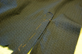 Обработка воротника,самое главное точно по разметке втачать детали воротника в стойку,я делаю это при помощи иголок,точно в разметку вставляю иглу с одной и другой стороны вкладываю готовый,отстроченный и проглаженный воротник между деталями стойки,протаскиваю,а иголки служат неким тормозом,типа дальше уже не надо,своеобразный стоп кран.Шов проложить точно по разметке.